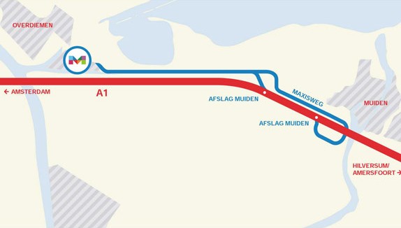 - Ga onderaan bij de afslag linksaf de Maxisweg op